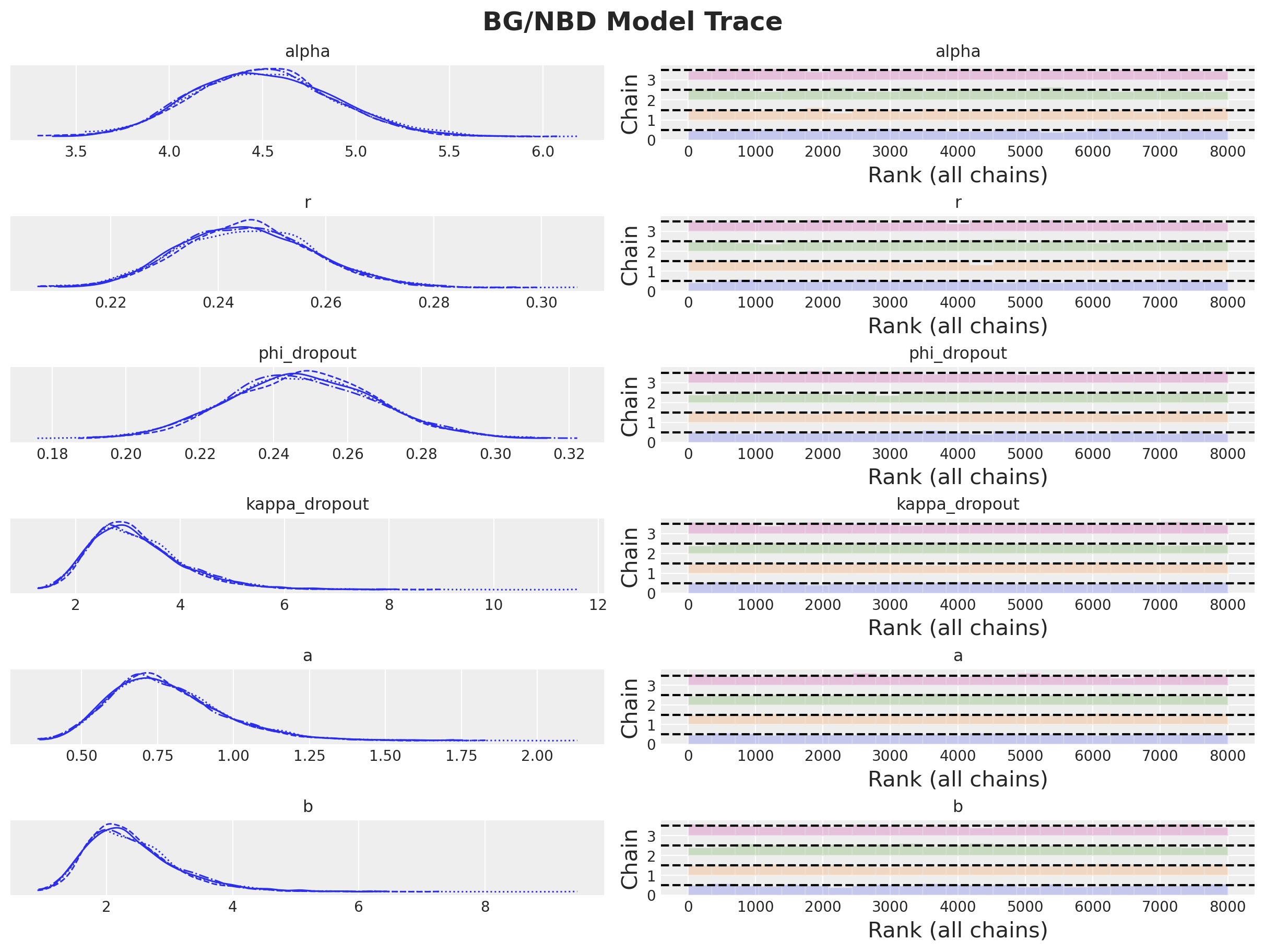 In this notebook we show how to fit a BG/NBD model in PyMC-Marketing. We compare the results with the lifetimes package (no longer maintained). The model is presented in the paper: Fader, P. S., Hardie, B. G., & Lee, K. L. (2005). “Counting your customers” the easy way: An alternative to the Pareto/NBD model. Marketing science, 24(2), 275-284.